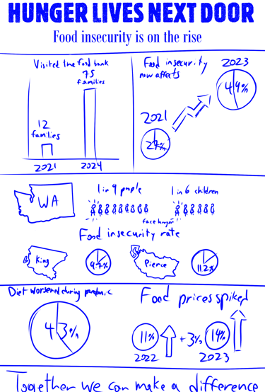 I designed an educational infographic focused on food security in the Washington area. My goal was to transform complex data into an accessible and visually engaging narrative that could resonate with a broad audience. I applied core visual design principles to establish a clear layout, thoughtfully selected typography, and a cohesive color palette to enhance readability and impact. Collaborating with stakeholders, I iterated on the design based on feedback, ensuring the final piece aligned with both the organization’s goals and brand identity. The result was a high-quality, print-ready infographic that effectively communicated the organization's mission and key statistics.